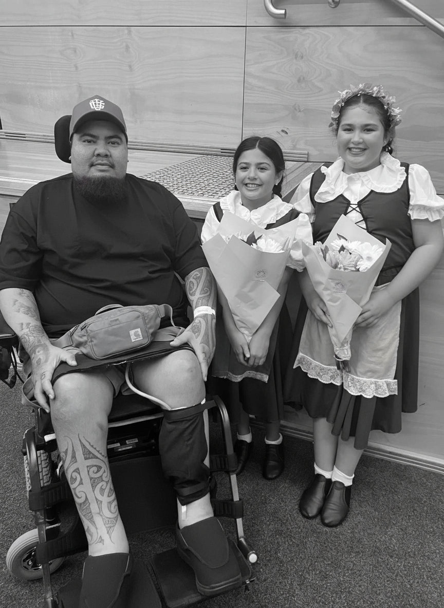 In 2019, my life changed when I was diagnosed with cancer. After years of treatment and rebuilding, I continued to push forward. In early 2025 the cancer spread to my spine and after multiple spinal surgeries, I am now paralysed from the chest down. It has been the biggest challenge of my life, but giving up was never an option. My motivation has always been my whānau, my culture and creating a future with meaning for myself and my beautiful girls.